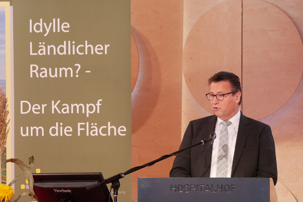 Rund 180 Teilnehmer aus dem gesamten Bundesgebiet sowie aus Österreich, der Schweiz und Luxemburg verdeutlichten, dass die DLKG mit der Tagung unter dem Motto „Idylle Ländlicher Raum? – Der Kampf um die Fläche“ ein drängendes Problem in der Kulturlandschaftsentwicklung aufgegriffen hat. Am ersten Tag der Tagung wurden vor allem die Flächenkonkurrenzen näher beleuchtet und analysiert, um vor diesem Hintergrund die Möglichkeiten zur Reduzierung des Flächenverbrauchs durch innovative Ansätze in der ländlichen Bodenordnung aufzuzeigen. Am zweiten Tag ging es schwerpunktmäßig um die Innenentwicklung und Schlüsselfaktoren einer intelligenten Flächennutzung. Den Abschluss der Tagung bildeten – wie auf den DLKG-Bundestagungen üblich – Best-Practice-Beispiele, um den Bogen von der Theorie zur Praxis zu spannen.
